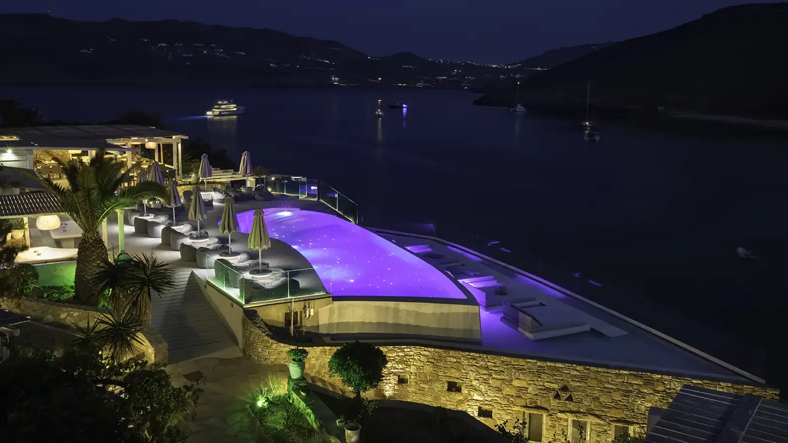 The starry sky, the hidden pool lights that are turned on once the sun sets, transform the pool scene into a romantic getaway. Sip on your local wine and appreciate the dreamy atmosphere with your loved ones.